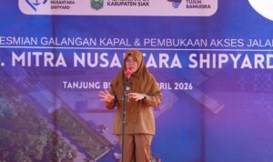 Bupati Siak Afni Zulkifli meresmikan pembangunan galangan kapal terpadu milik PT Mitra Nusantara Shipyard (MNS) sekaligus pembukaan akses jalan sepanjang 1,2 km di Kawasan Industri Tanjung Buton (KITB), Kecamatan Sungai Apit, Senin (20/4/2026).Pembangunan galangan kapal ini sepenuhnya berasal dari investasi swasta di kawasan industri milik pemerintah daerah. PT MNS melakukan investasi senilai lebih dari Rp300 miliar, dengan tahap pertama direalisasikan sebesar Rp100 miliar lebih.