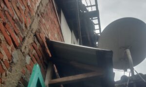 Lampung Utara — Hujan lebat besertai angin kencang porak-porandakan beberapa bangunan di Kotabumi, Lampung Utara dan sekitarnya, Sabtu, 14 Februari 2026 pukul 16.00 WIB. Mulai dari reklame roboh, atap rumah berterbangan hingga tempat parkir beratapkan rangka baja hancur.