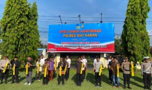 Merangkul unsur linmas, para tokoh dan berbagai elemen masyarakat. Polres Way Kanan melaksanakan kegiatan Apel Sabuk Kamtibmas untuk komitmen bersama dalam menjaga keamanan lingkungan (Harkamtibmas). Senin (20/4/2026).Apel Sabuk Kamtibmas guna meningkatkan kesiapsiagaan personel dan masyarakat terhadap potensi gangguan Kamtibmas dipimpin oleh Wakapolres Way Kanan Kompol Martono S.H., M.H. dengan dihadiri Pejabat utama Polres Way Kanan, ASN Polri beserta personel Polres Way Kanan, tokoh agama, tokoh masyarakat, ormas dan masyarakat sekitar.Kapolres Way Kanan AKBP Didik Kurnianto, S.I.K melalui Wakapolres Way Kanan Kompol Martono S.H., M.H