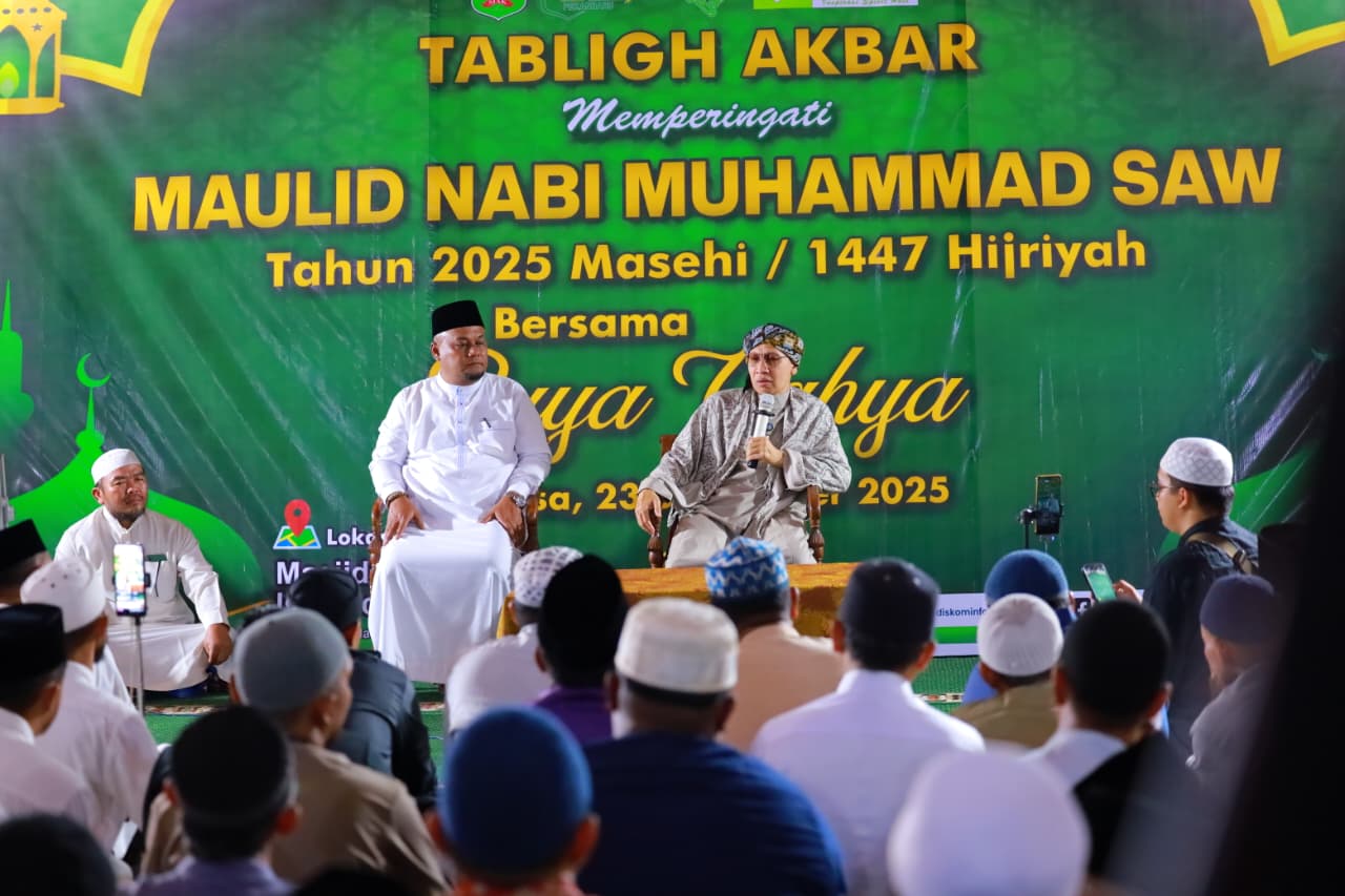 Siak, MINews- Pemerintah Kabupaten Siak menggelar tabligh akbar dalam rangka memperingati Maulid Nabi Muhammad SAW yang dihadiri oleh Yahya Zainul Ma’arif atau yang lebih dikenal dengan Buya Yahya
