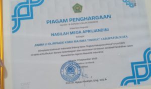 Bandung, MiNews Prestasi membanggakan kembali diraih oleh salah satu siswi Madrasah Alia Negeri 2 Kabupaten Bandung. Nabilah Mega Apriliandini berhasil meraih Juara III Olimpiade Kimia MA/SMA Tingkat Kabupaten/Kota pada ajang Olimpiade Madrasah Indonesia (OMI) 2025 yang diselenggarakan oleh Kementerian Agama Republik Indonesia.Piagam penghargaan diserahkan secara resmi oleh Direktorat Jenderal Pendidikan Islam sebagai bentuk apresiasi atas kerja keras dan dedikasi Nabilah dalam bidang sains, khususnya Kimia.